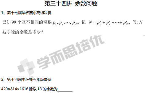 杭州奥数网:我们在中环杯、希望杯、华杯赛等历届真题的基础上,将各大考点划分成六大模块的六十个知识点,这六十个知识点浓缩了各种杯赛的精华,涵盖了绝大部分高频考点。通过完成这些知识点来备战杯赛,可以最大限度的提高效率。 【题目】